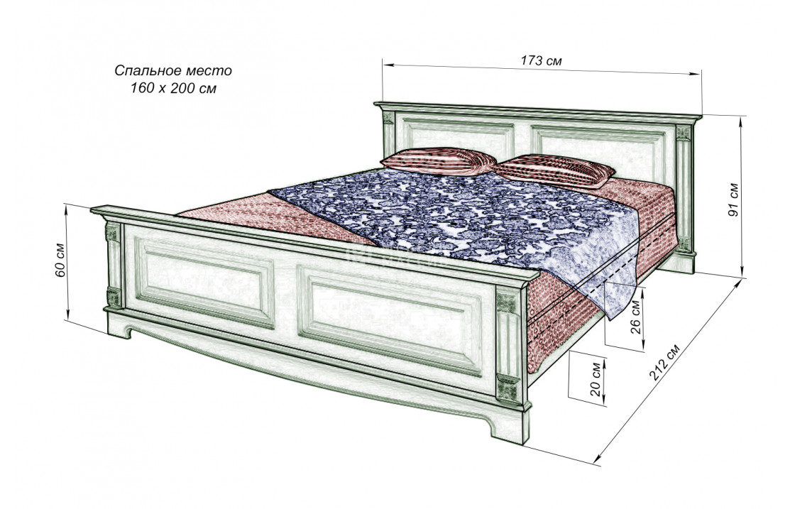 Кровать Версаль из натурального дерева. модель может быть изготовлена в четырёх вариантах исполнения из древесины на выбор: сосна, берёза, бук или дуб. широкий выбор вариантов покраски позволяет органично вписаться в любой интерьер. отличается износостойкостью, надёжностью, лаконичным дизайном. купите изделие по лучшей цене с доставкой на дом в интернет-магазине «мебель массив». Осуществляется доставка на дом по Орску и Оренбургской области .| Размер | Цена | |
