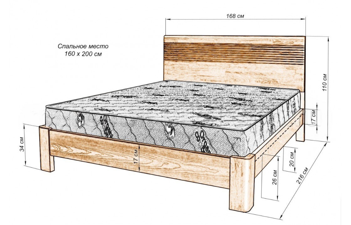 140x200 - глубина уменьшается на 100 мм = 685 мм