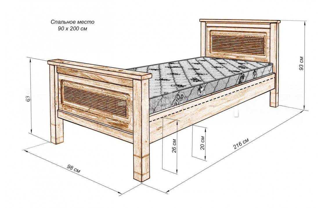 Кровать Фермер из экологически чистой натуральной древесины. изделие представлено в четырёх вариантах исполнения из древесины на выбор: сосна, берёза, бук или дуб. широкий выбор вариантов покраски позволяет органично вписаться в любой интерьер. отличается износостойкостью, прочностью, лаконичным дизайном. приобретайте изделие по выгодной цене с доставкой на дом в интернет-магазине «мебель массив». Осуществляется доставка на дом по Орску и Оренбургской области .| Размер | Цена | |