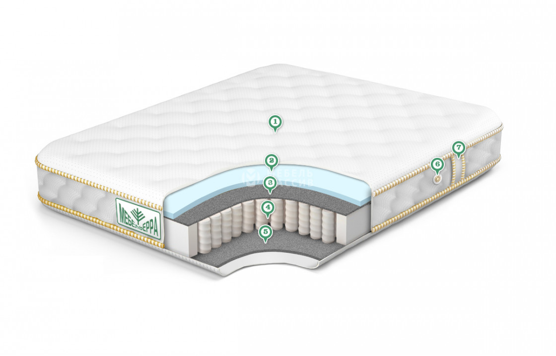 5. ППУ ST 2 см ? Пенополиуретан - мягкая и эластичная пена, которая состоит на 90% из воздуха. В матрасах используется в виде смягчающего и опорного материала. Придает упругости изделиям и изоляции. Благодаря структуре, в виде мелких ячеек, пенополиуретан обладает высокими показателями эластичности и устойчивости к нагрузкам, воздухопроницаемости.