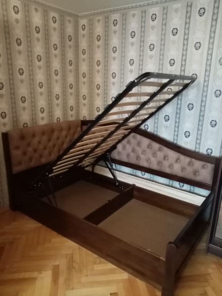 Кровать с мягким изголовьем из натурального дерева Вероника Soft-M с подъёмным механизмом, массив сосны, цвет коричневый 3.