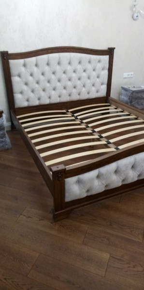 Кровать двухспальная, с мягким изголовьем из натурального дерева Соната 2, массив сосны, цвет старый орех 2.
