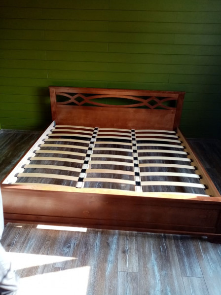 Кровать двуспальная из натурального дерева Стефани, массив сосны, цвет коричневый 3. Изделие укомплектовано матрасом с ортопедическим эффектом.