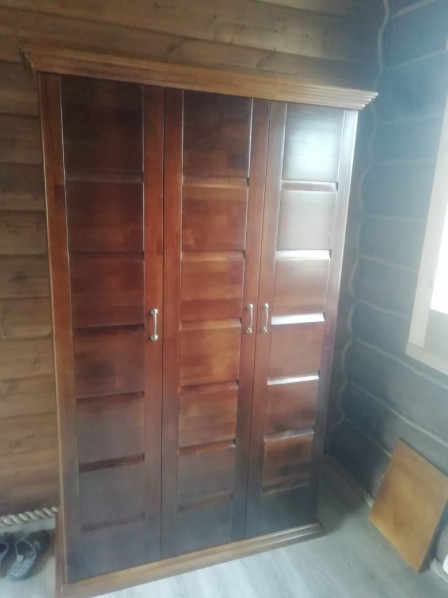 Шкаф трёхстворчатый из натурального дерева Бали, массив сосны, цвет красно-коричневый 2, мебель выполнена по индивидуальному проекту.