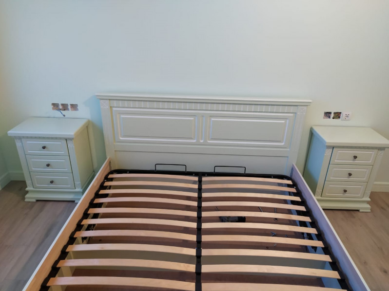 Спальный гарнитур из натурального дерева Лира Lux, массив сосны, цвет белая эмаль.