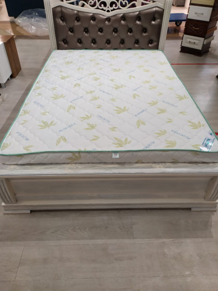 Кровать с мягким изголовьем из натурального дерева Сицилия, массив сосны, цвет белая эмаль с черной патиной. Изделие укомплектовано матрасом с ортопедическим эффектом.