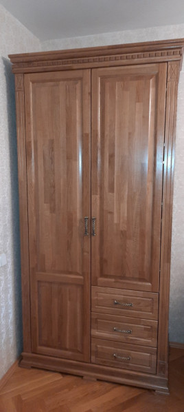Шкаф двухстворчатый из натурального дерева из серии Пальма, массив сосны, цвет старый орех 1.