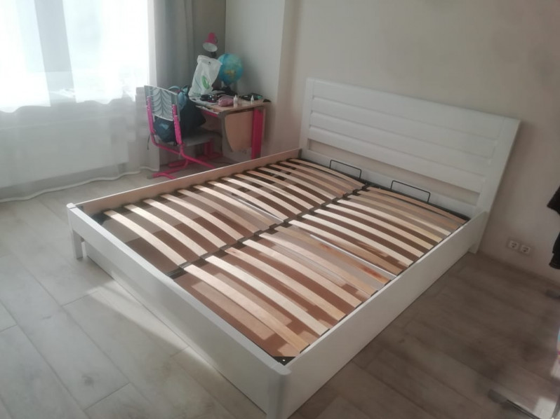Кровать двуспальная из натурального дерева Блэр с подъёмным механизмом, массив сосны, цвет белая эмаль.