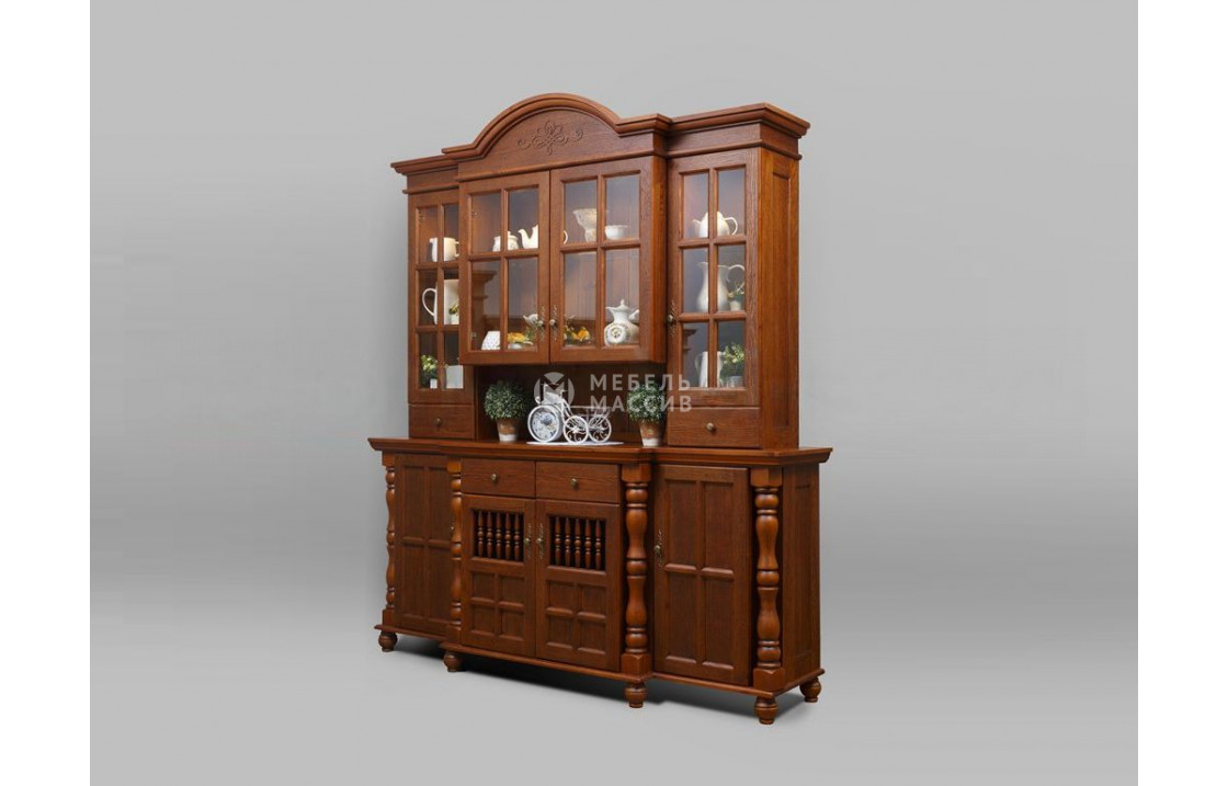 Сервант Ретро на четыре створки обязательно понравится любителям винтажной мебели. Эта модель превосходно впишется в средние или большие по площади помещения. Особенностями дизайна изделия являются резные элементы, включая боковые колонны, узоры и карниз. Функционал серванта тоже находится на высоком уровне благодаря множеству отделений и ящиков. Для изготовления модели использован массив сосны, цвет древесины и образцы ручек можно подобрать индивидуально в соответствующих разделах на странице товара. Доставка по Орску и Оренбургской области .| Размер | Цена | |