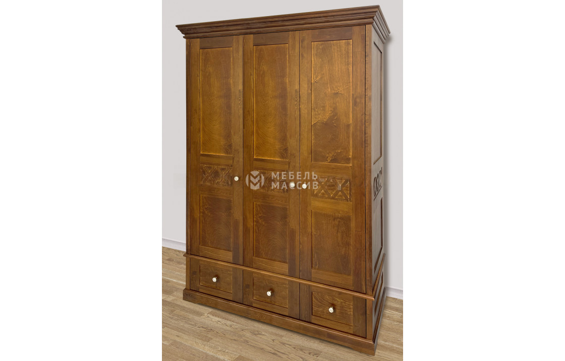 Трехстворчатый шкаф Дубрава – это классический образец мебели, который придется по вкусу всем, кто ценит изысканность и элегантность в интерьере. Его внешний вид поражает своей роскошью, благодаря использованию массива натурального дерева в качестве главного материала и широкой цветовой палитре. Лаковое покрытие придает еще больше изыска и акцентирует внимание на прекрасной древесной текстуре. Одной из особенностей модели является сплошное основание, обеспечивающее устойчивость и надежность. Этот шкаф отличается своей вместительностью и долгим сроком службы, что делает его отличным выбором для любого дома. Доставка по Орску и Оренбургской области .| Размер | Цена | |