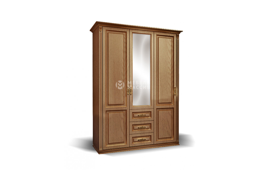 Шкаф 3-створчатый из сосны Дарина изготовлен из экологически чистого массива. Благородный вид модели подчёркивается естественным древесным рисунком. Вместительное изделие с тремя закрытыми отделениями, вертикальным зеркалом и тремя ящиками можно купить по специальной цене в нашем интернет-магазине.